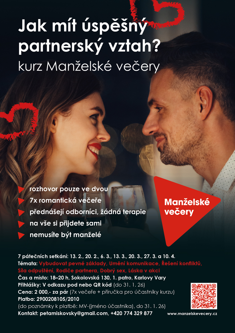 Přihlášení do 31. 1. 2026 včetně platby na tomto odkazu: forms.gle/q1FyLjenBUdzjW3t8 nebo QR kódu z letáčku. Kapacita omezena na 7 párů. V případě překročení kapacity a zájmu uspořádáme dodatečný kurz.